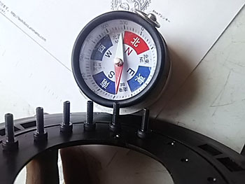 方位磁石を使ってNとS極を判定。N,S極は9か所づつ。